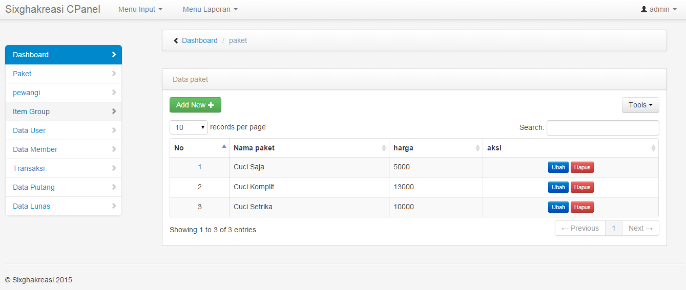 Jika Anda ingin membuka bisnis laundry dan ingin go-online dimana pelanggan Anda dapat memesan laundry lewat aplikasi/website. Kami dapat membuatkannya untuk Anda. Sistem sudah jadi hanya perlu penyesuaian sesuai dengan bisnis laundry Anda, misalnya penambahan logo atau nama Laundry. Selain itu kami menerima minor improvement seperti penambahan beberapa modul. Berikut kami lampirkan aplikasi Aplikasi Jasa Laundry Berbasis Web ini, adapun untuk modul-modulnya adalah sebagai berikut: