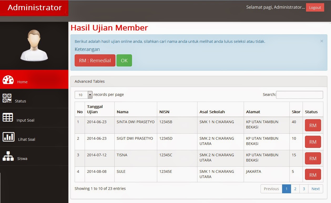 Screenshot Halaman Administrator